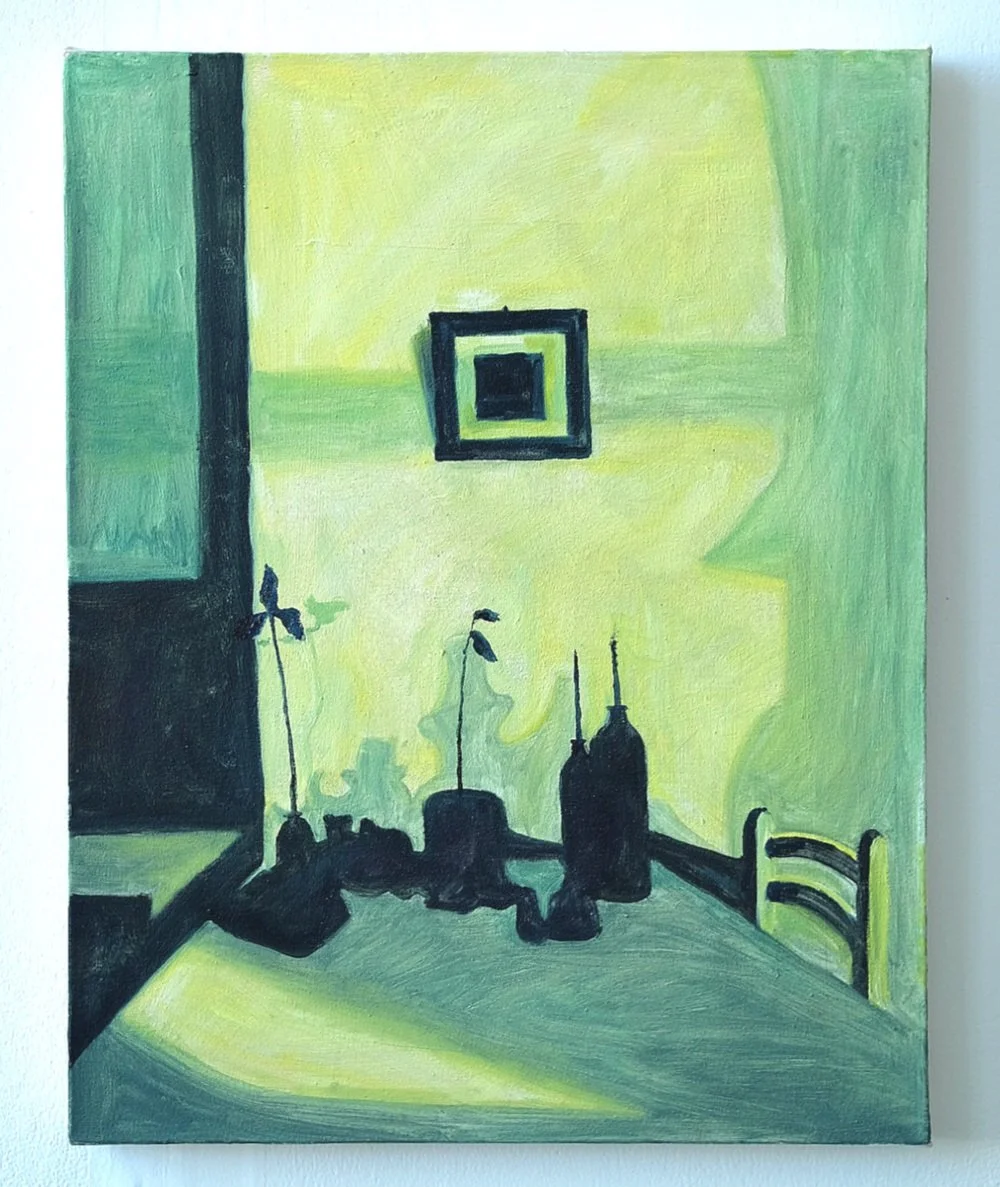 'where we used to sit' (2025), oil paint on canvas, 40 x 29.5
